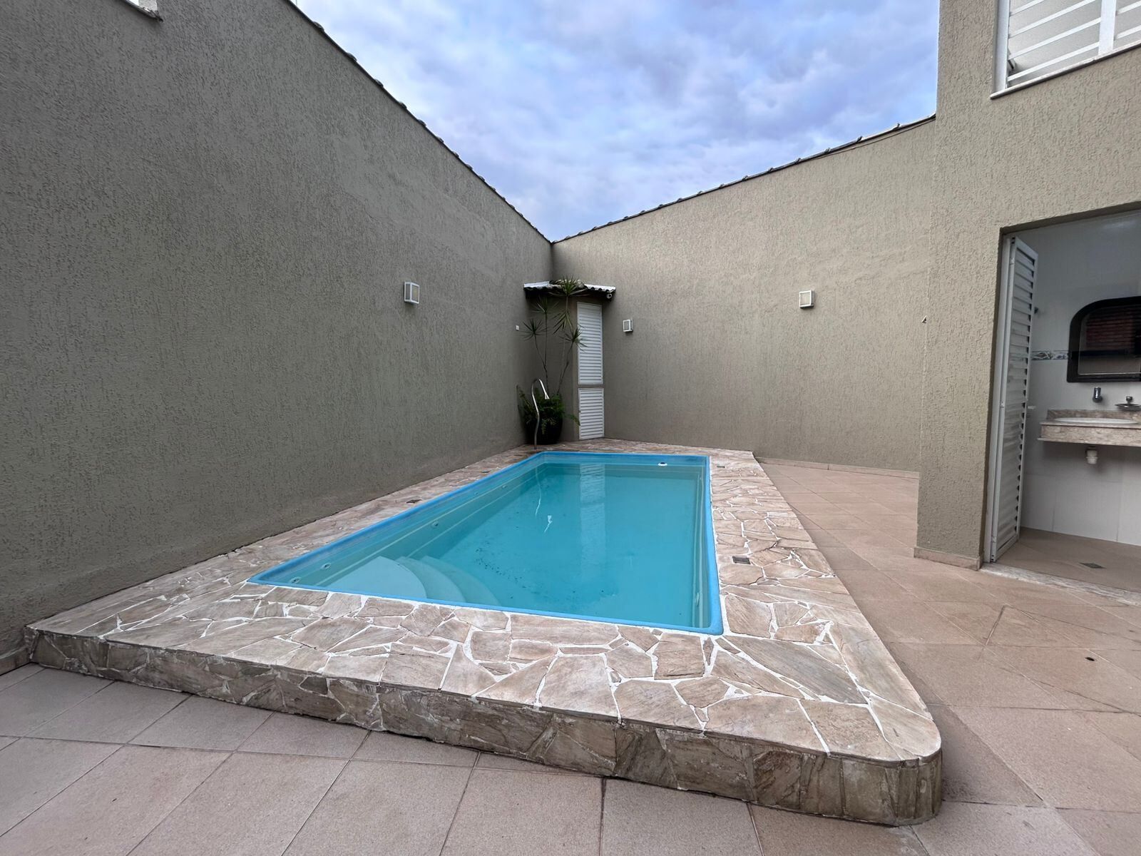 Foto da piscina colocada a frente para melhor visualização, a piscina fica no quintal gourmet.
